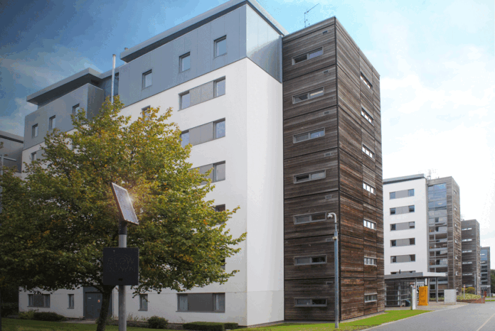 The Student Village built in 2006, on Frenchay Campus, is home to 2000 students. The original heating system was becoming tired and inefficient to manage. Each room needed to be visited to programme the control with a handset, and the heater panels needed replacing. As Kirsti explains, “As panels failed, there was a risk of them getting replaced on an ad hoc basis with integrated control heaters, but we had always wanted a better way of controlling the heating and, having to enter students’ rooms, even before Covid, was not great. We had a hotch-potch of settings in rooms all over the place and no way to re-set them all at once.”
