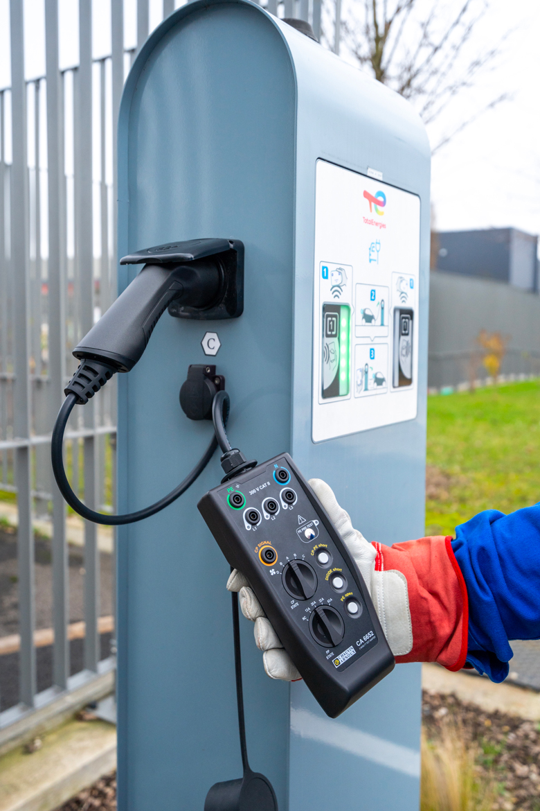 The CA 6652 is capable of providing a quick diagnosis of EVSE charging station operation and has in-built safety features in the event of a fault. When paired with a multifunction installation tester, it supports complete electrical safety testing in compliance with industry standards.