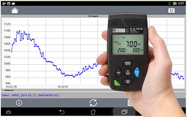 Instantaneous (snapshot) readings are useful to confirm current conditions, but to establish whether or not ventilation arrangements are adequate in the longer term, it is necessary to take readings over a day or an even longer period. This can be done manually by noting readings at prescribed intervals, but a much more convenient solution is to use a CO2 monitor with logging facilities which will take the readings automatically and store them.