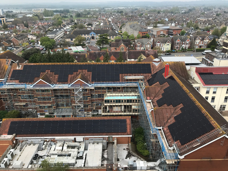 Stuart Lane, Sustainability and Carbon Manager for University Hospitals Dorset NHS Trust said: “We are delighted to announce successful project completions with Centrica Business Solutions and Aztec, overcoming site constraints and height access challenges.