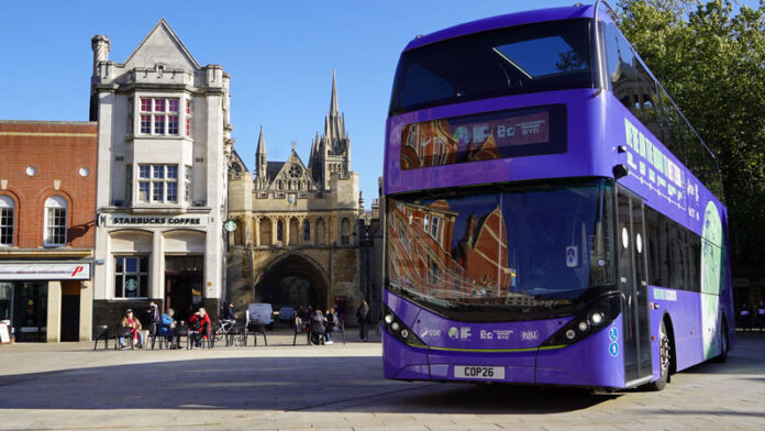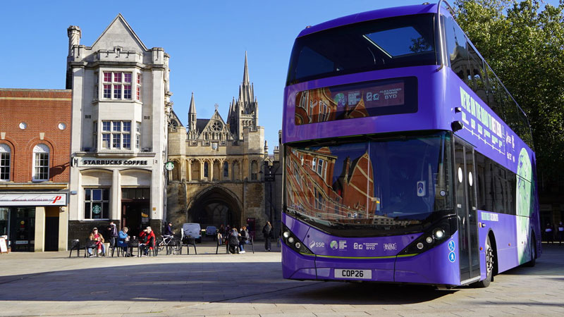 As the fourth stop on the ‘Road to Renewables’ tour organised by renewable energy leader SSE and bus manufacturer Alexander Dennis, the COP26 branded bus stopped off in Peterborough’s Cathedral Square to mark the city’s role in helping the UK meet its net zero goals.
