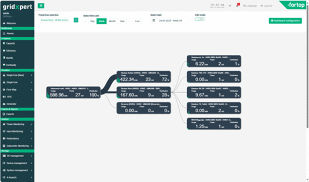 - Power Tree Function: Maps real-time and historical phase loads for the entire electrical system, identifying energy waste and optimising capacity