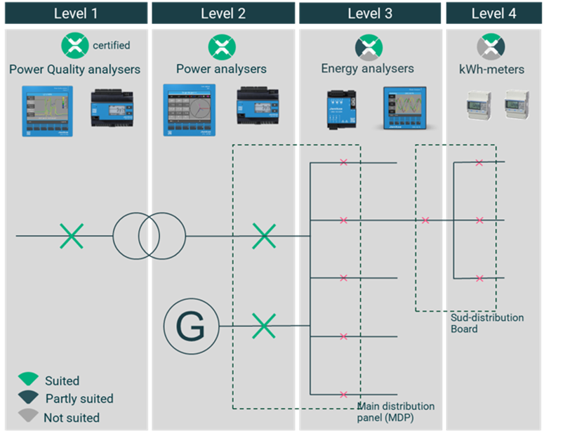 Level 4: Sub-distribution boards and end users ā DIN-rail consumption meters or multi-channel meters