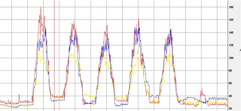By far the most startling revelation from the monitoring results, however, can be seen by referring again to Figure 1. As would be expected, this shows that the peak current is drawn from the supply during the day on weekdays when the school is occupied. However, the results also show that in the evenings and at the weekends, when the school is closed, a current of around 30 A per phase is still being drawn. While some of this probably relates to things like emergency lighting and is therefore unavoidable, the overall figure was unexpectedly high.