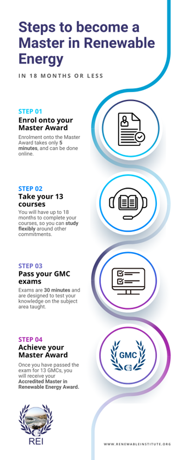 Join professionals from 150 different countries worldwide and enrol onto the award-winning REI’s Master in Renewable Energy Award.