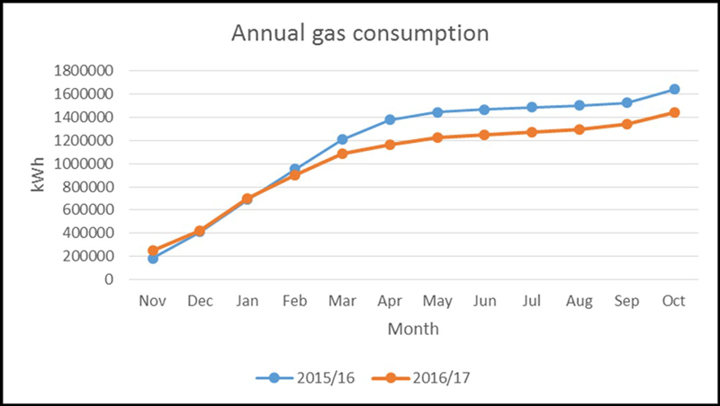 “This picture is of a boiler plant in a school that was never connected to the BMS outstation when installed. So the BMS said all the heating was off, but I could see gas consumption going through the AMR meter so after some lengthy investigations the Operations Manager found this. This had been going on for about 3-4 years at a cost of about £10k per year which represented about 35% of the school’s energy bill each year.”