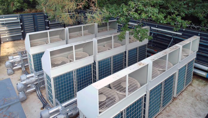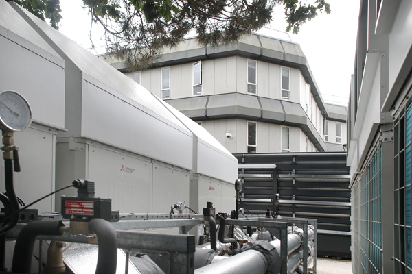 Nine CAHV-R air source heat pumps from Mitsubishi Electric have been installed in a special compound to replace the gas boilers. The CAHV-R units can deliver domestic hot water up to 70°C, which will be used for both heating and hot water throughout Dorset House.